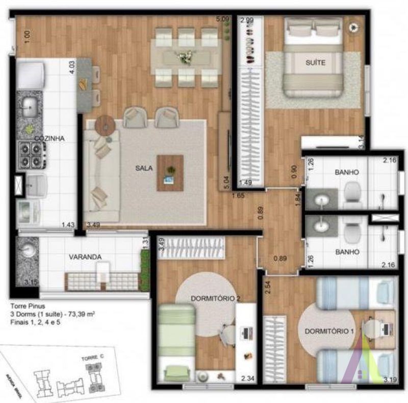 Apartamento com 3 quartos, 1 suíte e 2 banheiros a venda na Av Avenida Brasil, Bairro Jardim Carambeí de São Roque, com 56.00 m² de área privativa