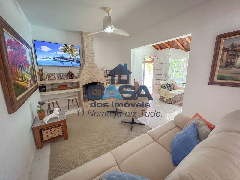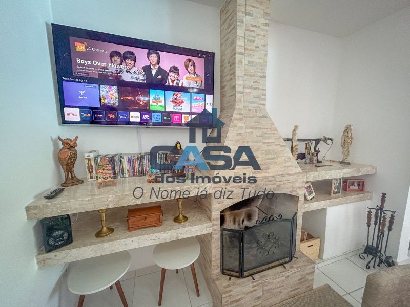 Sala de TV com lareira.