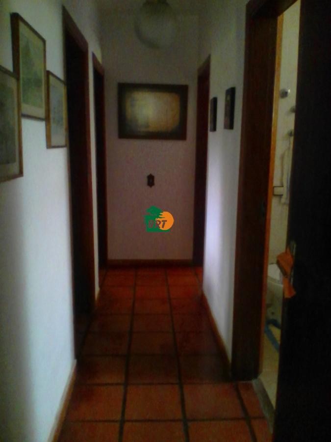 Casa principal com 3 dormitórios (sendo 1 suíte), cozinha, sala de jantar com lareira, sala de estar e banheiro social.